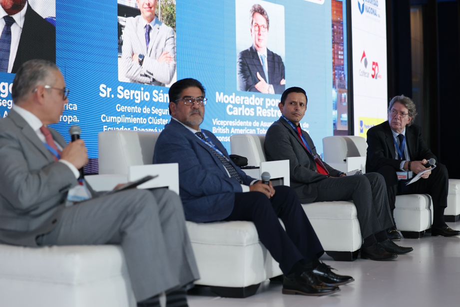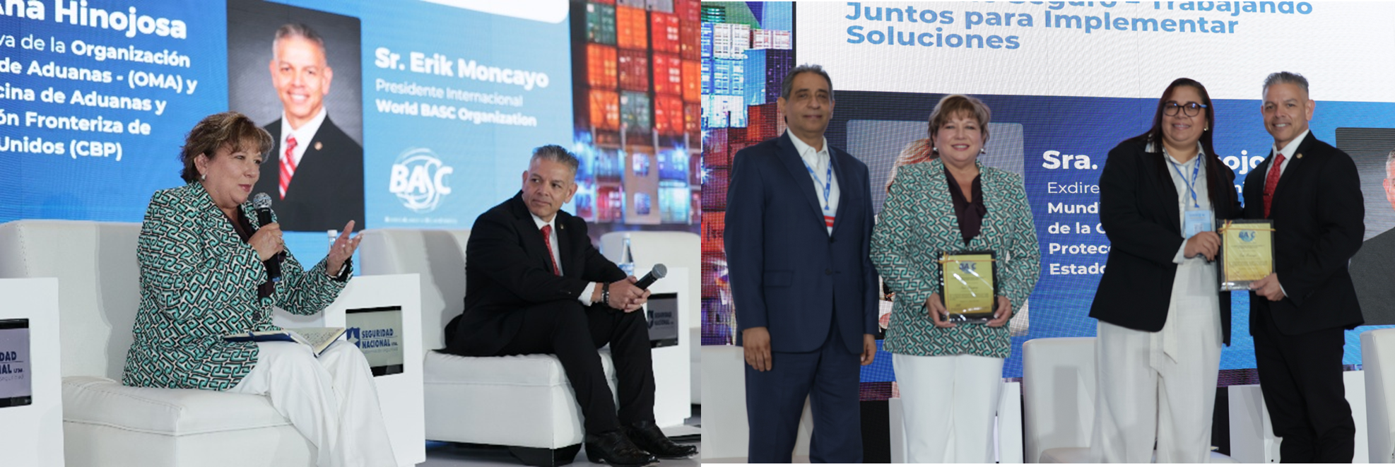 La agenda del Congreso avanzó posteriormente con el conversatorio sobre “Comercio Seguro – Trabajando Juntos para Implementar Soluciones”, que contó con dos inviados internacionales: la Sra. Ana Hinojosa, exfuncionaria de la Organización Mundial de Aduanas (OMA) y de la Oficina de Aduanas y Protección Fronteriza de Estados Unidos (CBP), y el Sr. Erik Moncayo, Presidente Internacional de World BASC Organization (WBO). Ambos compartieron una visión integral sobre la importancia de la colaboración entre gobiernos, empresas y organismos multilaterales para enfrentar amenazas transnacionales como el contrabando, el narcotráfico, la corrupción y los delitos financieros. Recalcaron que la confianza, el cumplimiento normativo y la adopción de estándares internacionales son condiciones indispensables para operar con éxito en los mercados actuales.