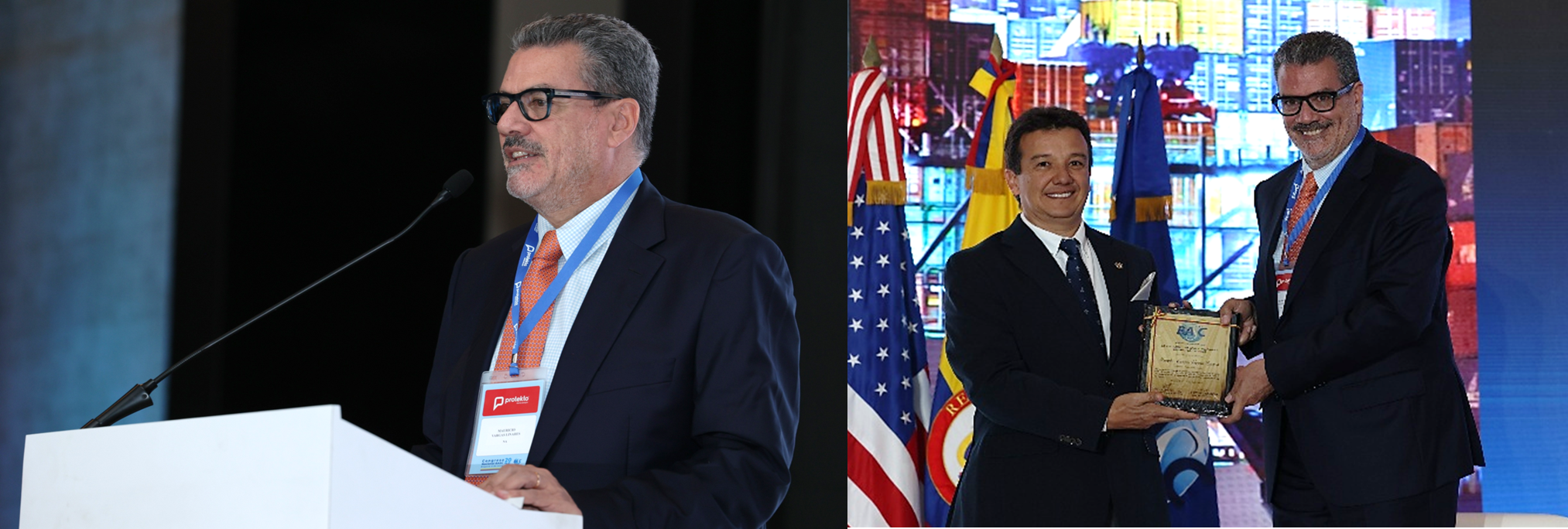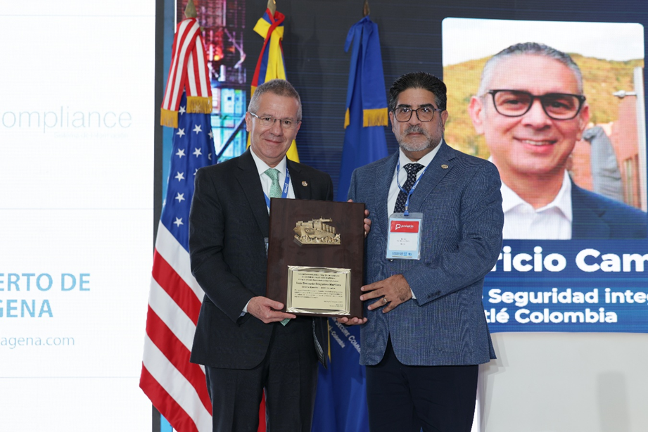 Luego de este momento, el Sr. Luis Bernardo Benjumea, Director Ejecutivo de BASC Colombia, recibió un reconocimiento especial por parte de la compañía DOLE, por su liderazgo y compromiso con la construcción de un comercio internacional más seguro y responsable. La distinción fue entregada por el Sr. Diego Soria, Director de Seguridad para América Latina, Norteamérica y Europa de DOLE, quien destacó el rol de BASC Colombia como un referente en la promoción de buenas prácticas.