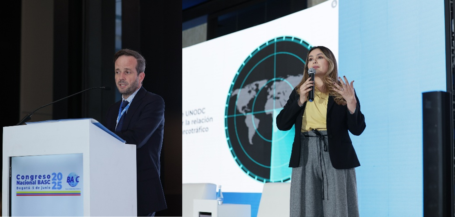 Posteriormente la agenda continuó con la intervención de la Oficina de las Naciones Unidas contra la Droga y el Delito (UNODC) con la conferencia “Estrategias de la UNODC para la prevención de los delitos transnacionales de narcotráfico y corrupción”. En este espacio participaron el Sr. Olivier Inizan, Representante Regional Adjunto para la Región Andina y del Cono Sur, y la Sra. Andrea Agudelo, Jefe Regional de Corrupción y Delitos Económicos. Ambos expertos compartieron los más recientes lineamientos de la UNODC para enfrentar las economías criminales que amenazan las cadenas de suministro y debilitan la confianza institucional, haciendo énfasis en la necesidad de fortalecer los mecanismos de trazabilidad, el intercambio de información y la integridad corporativa como barreras contra el crimen organizado transnacional.