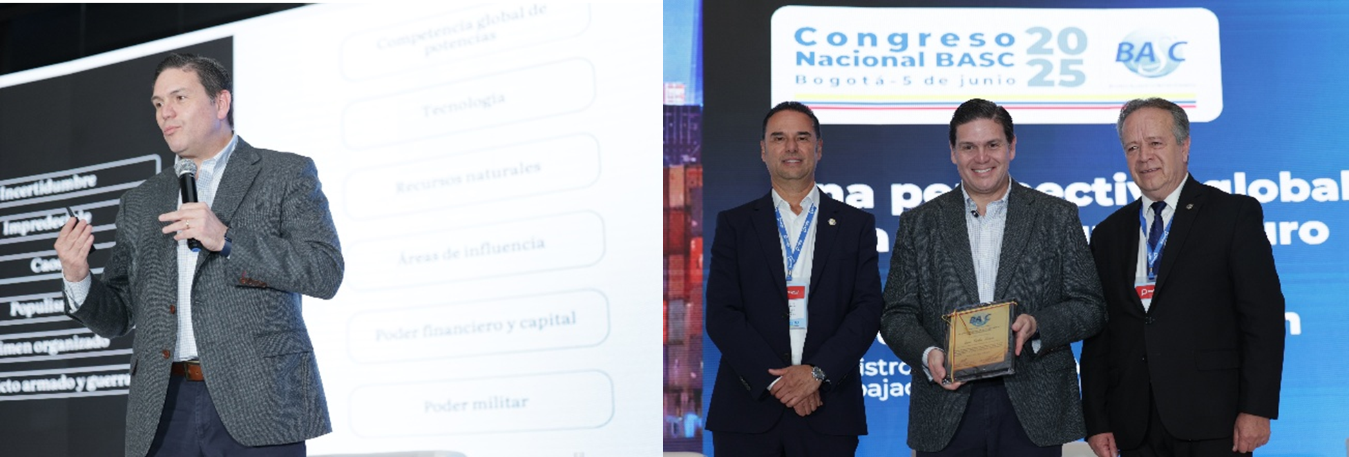 La agenda del congreso inició con la conferencia “Análisis del riesgo geopolítico global y sus implicaciones para Colombia”, a cargo del reconocido analista, periodista y exministro: el Dr. Mauricio Vargas. Durante su intervención, el Dr. Vargas ofreció una visión profunda sobre el contexto internacional actual, marcado por tensiones comerciales, conflictos regionales, ciber amenazas y reorganización de poderes globales, y cómo estos factores impactan directamente en la seguridad, la logística y la economía del país.