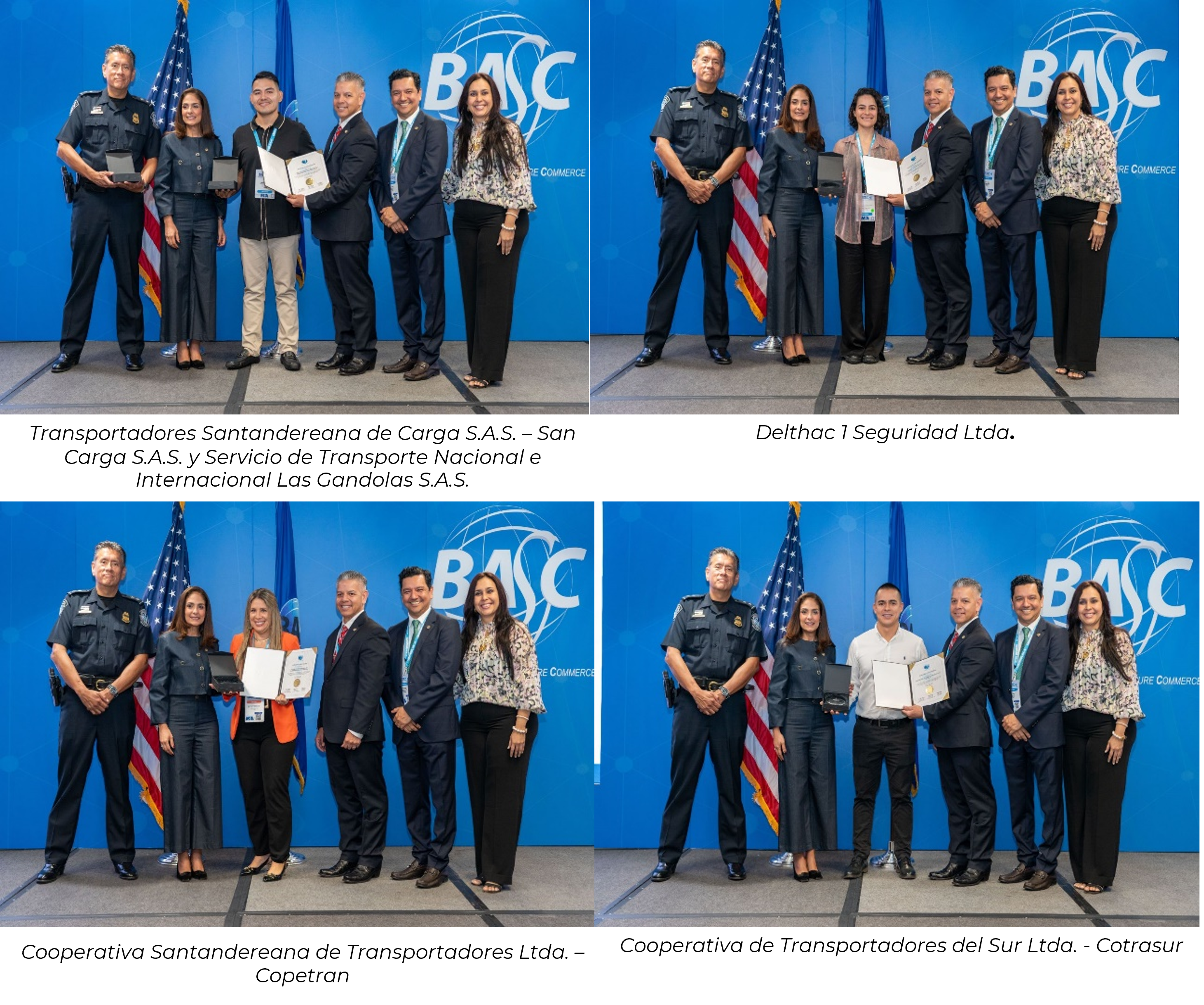 En particular, los Capítulos de BASC en Colombia destacaron la labor y el compromiso de sus empresas miembro, quienes recibieron menciones honoríficas por parte de las delegaciones internacionales presentes. Las empresas reconocidas en las categorías como Empresas Fundadoras y con el Mayor Número de Certificaciones Ininterrumpida fueron por capítulos regionales fueron las siguientes: