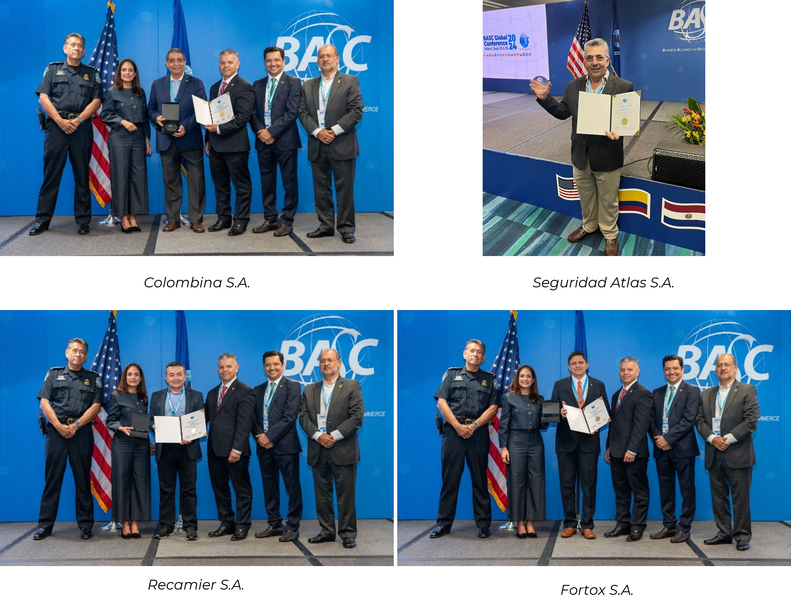 En el marco del 11° Congreso Mundial BASC 2024, celebrado el pasado 25 y 26 de septiembre en Miami, se llevó a cabo la ceremonia de reconocimiento a las empresas BASC que, durante años, han demostrado su compromiso con la seguridad y el comercio internacional seguro. El evento contó con la distinguida presencia de representantes del Servicio de Aduanas y Protección Fronteriza de los Estados Unidos - CBP, así como altos directivos de la World BASC Organization (WBO), quienes fueron testigos honorarios de esta celebración.