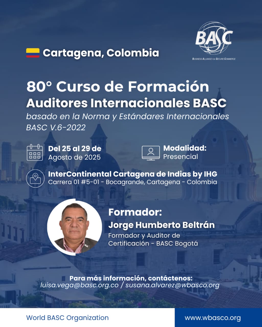 World BASC Organization se complace en anunciar el 80° Curso de Formación de Auditores Internacionales BASC basado en la Norma y Estándares Internacionales BASC Versión 6-2022, a realizarse del 25 al 29 de agosto de 2025, dirigido a profesionales avalados por los Capítulos BASC para realizar auditorías de tercera parte que hayan sido previamente capacitados en la Interpretación de la Norma y Estándares BASC, Gestión del Riesgo y Formación de Auditor Interno BASC.
